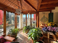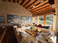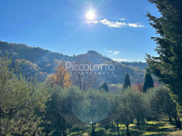 La dimora, adagiata su un dolce pendio ricco di olivi e cipressi, è sviluppata su tre livelli. L'ingresso è preceduto dalla suggestiva veranda; ampio pranzo-cucina con stube; soggiorno mansardato a doppia altezza con luminose vetrate e terrazza panoramica; 5 spaziose camere da letto, 5 bagni.